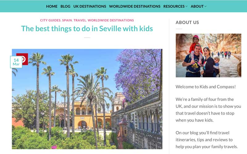 It’s no wonder that Clare’s blog is the #2 UK family travel blog. Her gorgeous pictures and concise writing really bring Sevilla alive! Clare does a great job of highlighting why Sevilla is a family-friendly “go-to” destination – its walkable city center, charming atmosphere, and adventurous sites and attractions. We recommend reading Clare’s blog because of the detailed tips regarding pricing and hours of highlighted attractions. Read more here.
